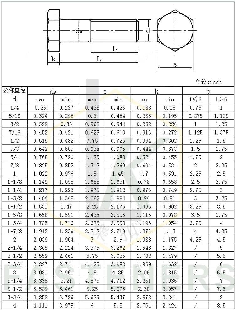 英制高强度螺栓主要用以钢结构工程,其关键特征是仅限于一次使用,一般用以永久连接,严禁反复用到!
