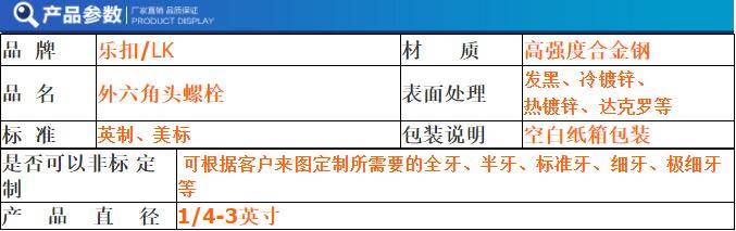 产品详情:由英制高强度螺栓连接的螺栓由10.9或8.8的优质合金构造钢制成,并经过热处理。