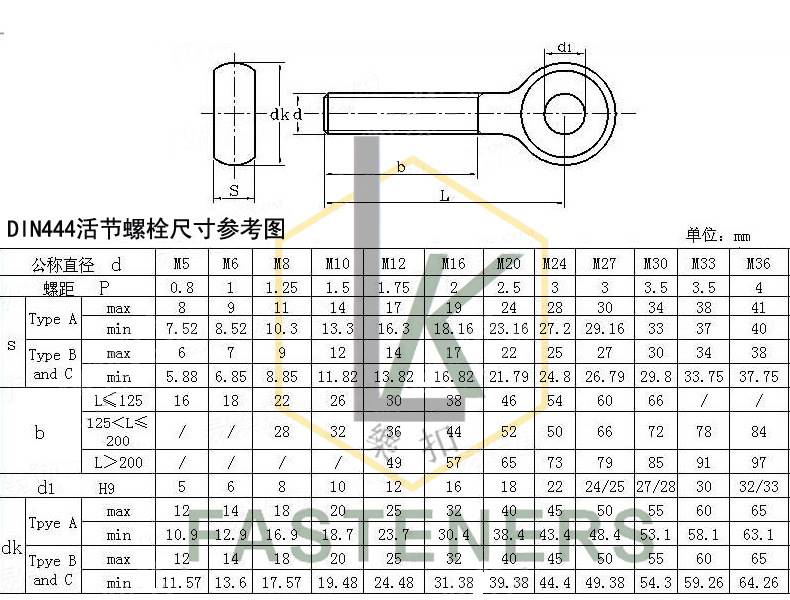 产品详情:活节螺栓一般而言指国家标准798吊环螺栓和德国规格(DIN)444吊环螺栓。